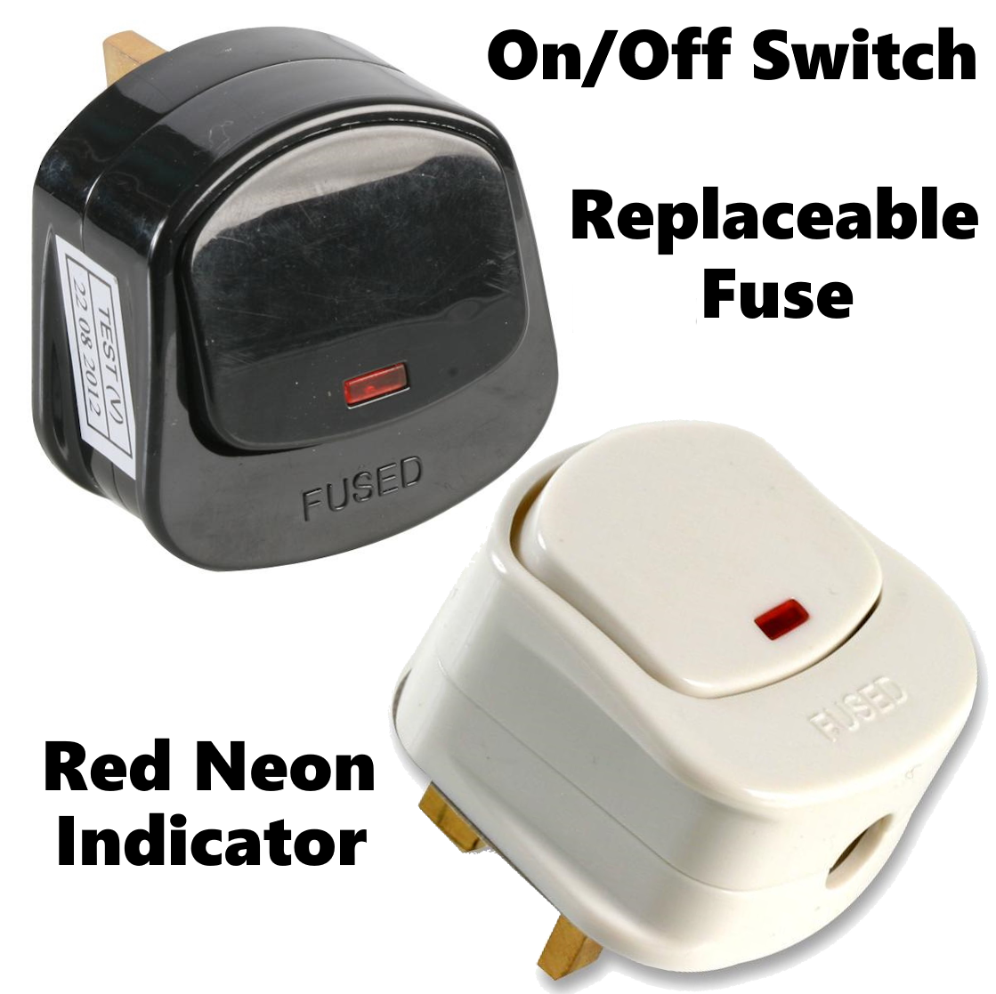 13A SWITCH PLUG ON OFF 3 PIN FUSE UK PLUG TOP WITH NEON LIGHT BLACK WHITE Product information Mains Plug... Read more