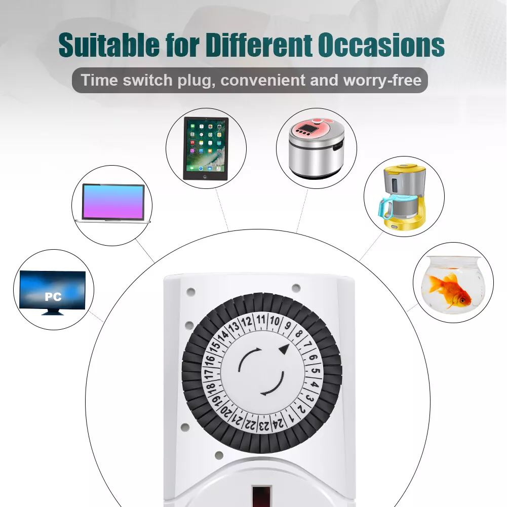 24 Hour Mechanical Mains Plug In Timer Switch Time Clock Socket UK 3 Pin Adapter Product information Analogue, 24-Hour programming... Read more