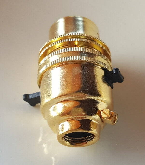 2x Switched Brass Bayonet Cap BC B22 Bulb Lamp Holder Shade Ring 1/2 Inch Thread