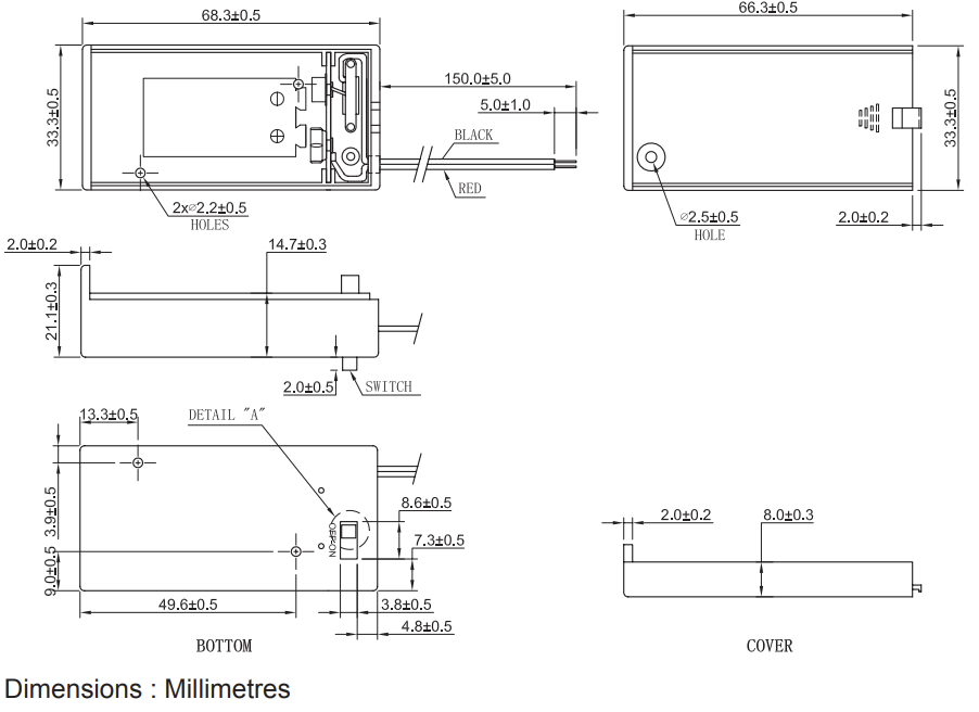 3 Qty PP3 9V Block Battery Holder with Detachable Lid Robust black ABS resin construction 150mm red/black stranded wire lead... Read more