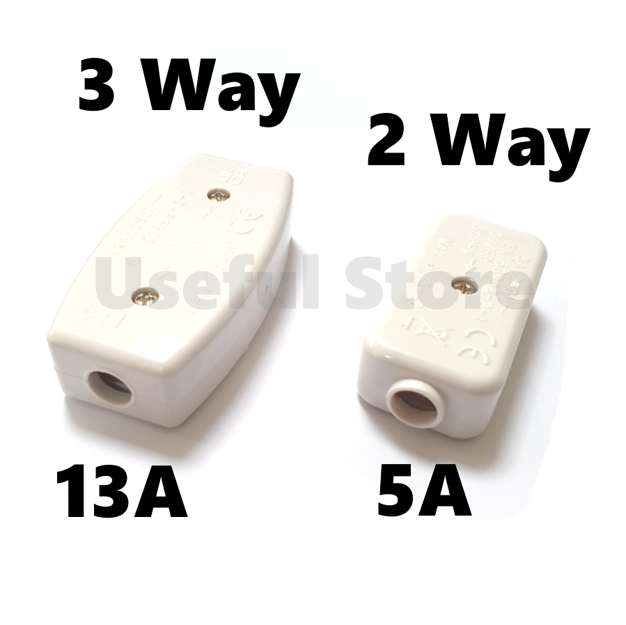 Inline Junction Mains Cable Connector Box 2 or 3 Way Pin 5A 13A ~Pack Size~