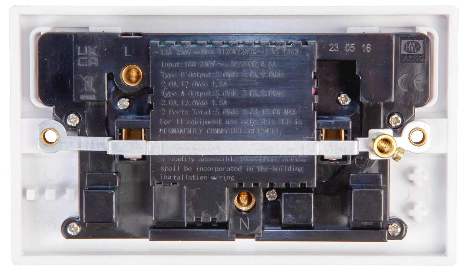 New Double 13A Switched Socket with Super-Fast USB A & Type C Charger Port UK Product information Double switched mains... Read more