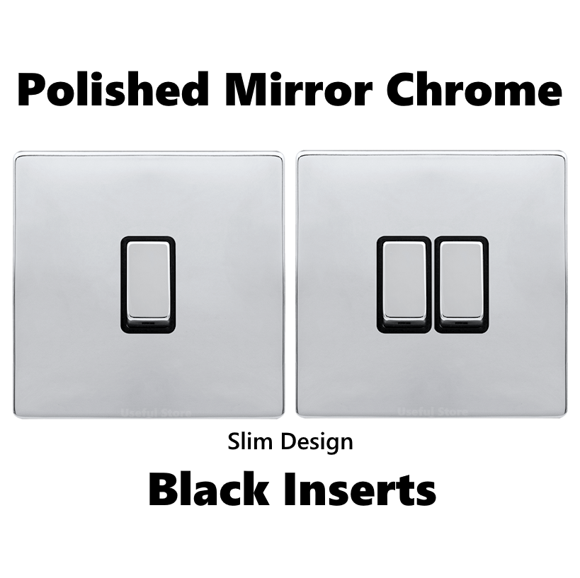 Screwless Slim Mirror Polished Chrome Light Switches with Black Inserts Product Features Available In Polished Chrome Mirror Finish Slim... Read more