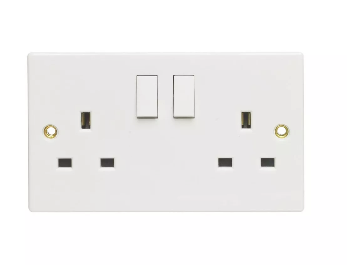 Wall Socket Switched 2 Gang White Twin Double Plug Electrical Square Edge DIY